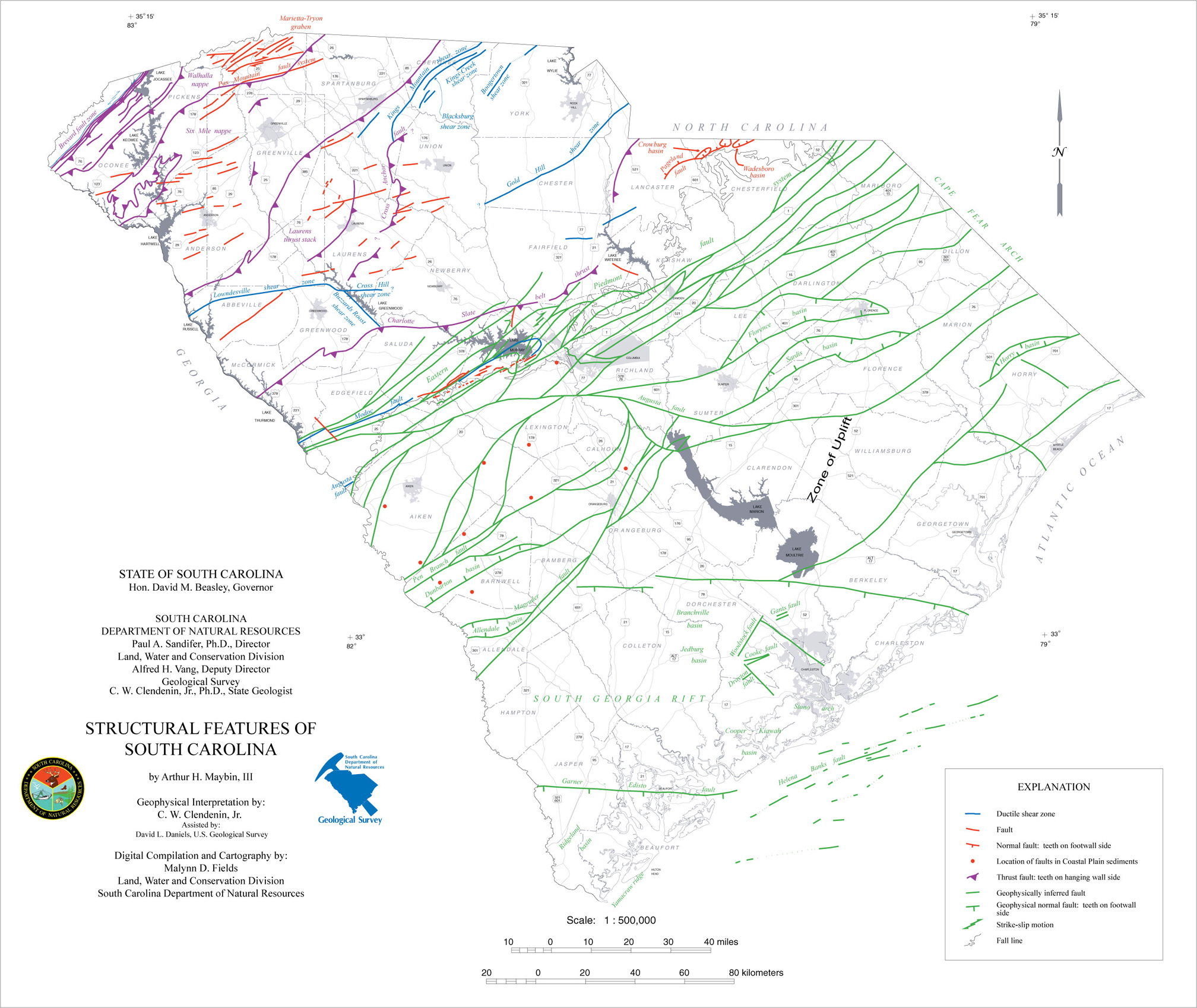 Structural Features of South CarolinaSource: SCDNR, Geological Survey
