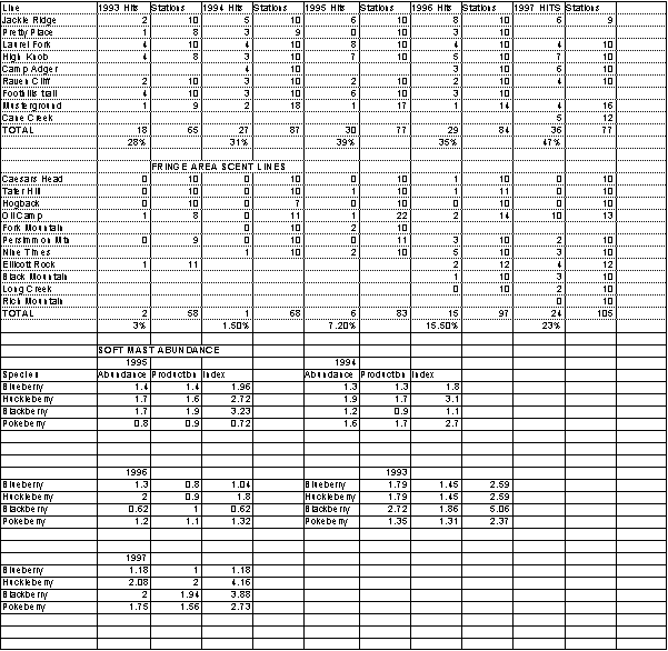 Table A-6. Bear Bait Station and Hard and Soft Mast Survey Results on Jocassee Gorges.