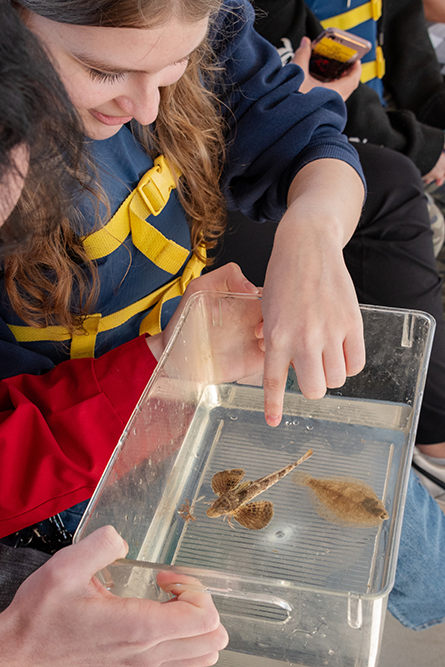 We offer FREE on-site field trips that showcase current marine science research. Students get hands on experiences aboard the Educational Vessel Discovery, exploring the salt marsh, learning about sea turtles and more!