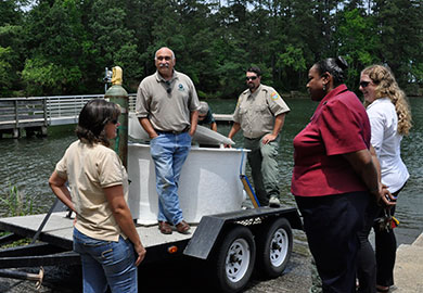 Other elected officials are also keenly aware of the importance of natural resources to the areas they represent. State Rep. Anne Parks of Greenwood joined Pitts and DNR biologists at the Greenwood stocking, and state Sen. Larry Grooms of Charleston lent a hand at the Moultrie stocking.